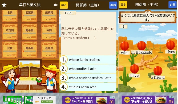 「早打ち英文法」は、文法アプリの中で一押しアプリのひとつ。