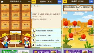 中学・高校の英文法を学ぶアプリ。整序英作文と空所補充の問題が用意されている。数多くの問題を解くことで、英文法を身に付ける。